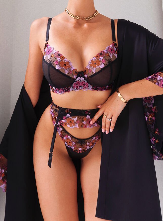 Elevate your honeymoon hotness and go all out with this mesmerising set from Boux Avenue with black mesh and embroidered florals. Your new beau won’t know what’s hit him when you walk into the room and reveal this sultry set under a black silk robe – there’s only one way this is going to go!