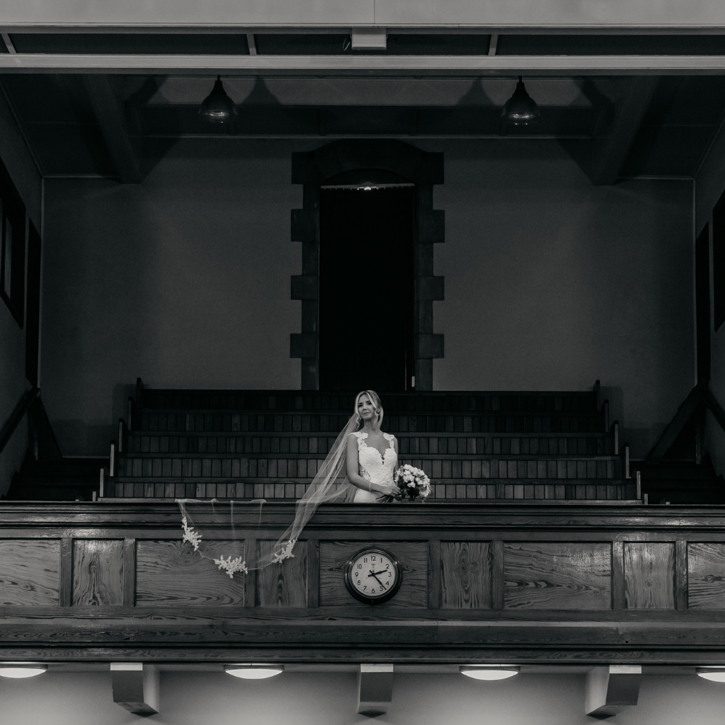 The bride chose a Nicole Spose dress from LA Bridal House in Carrickfergus. Having visited another boutique before this, Hayley had been convinced she had found her dress, but decided to check out this store just to be sure. ‘It’s so true when people say you just ‘know’ when you’ve found the one!’ Hayley’s dress was a lace and pearl bodice complemented with a single tier veil with beading and lace. ‘The staff at LA Bridal were so friendly and helpful. They really did go above and beyond for me.’