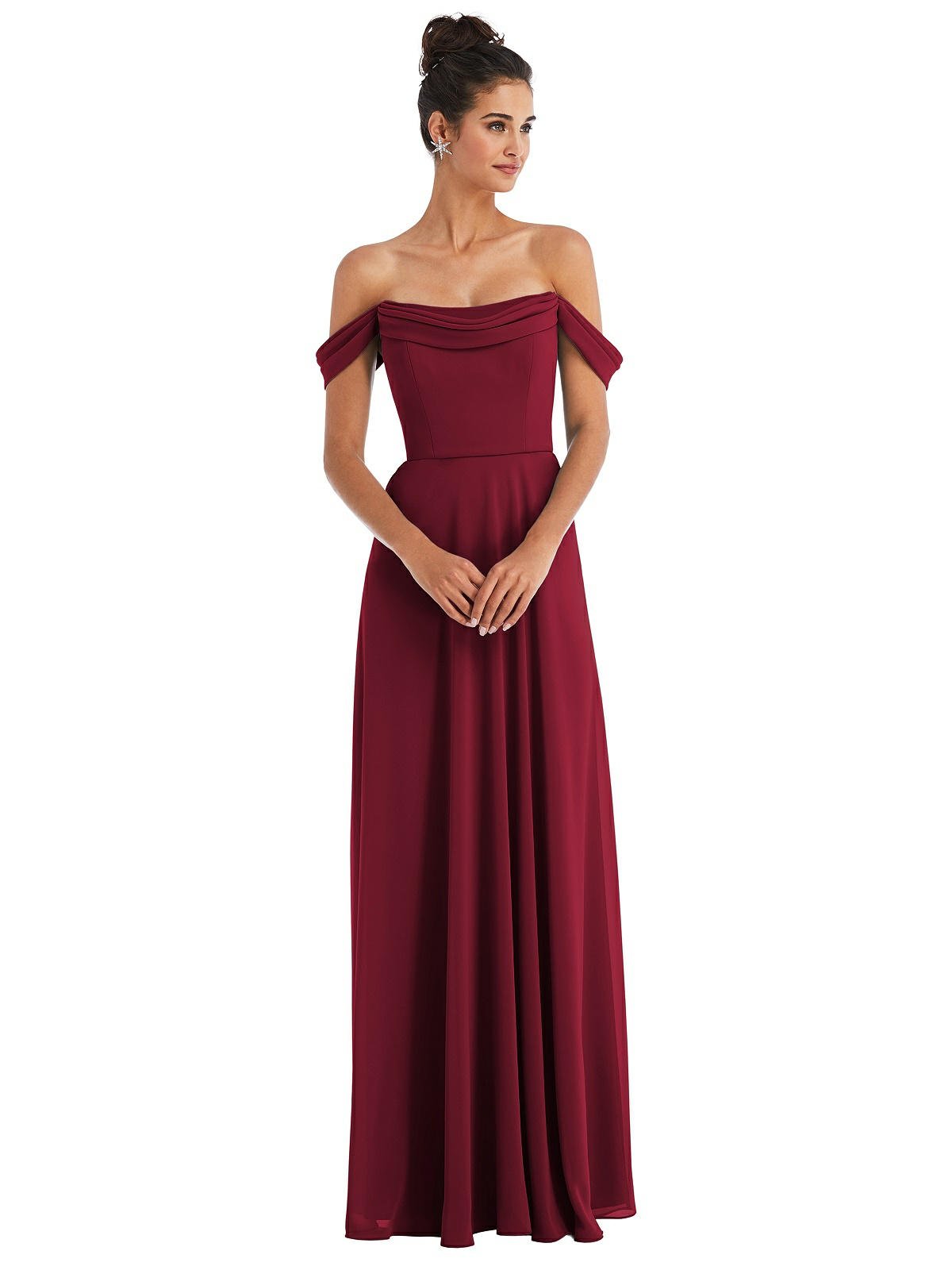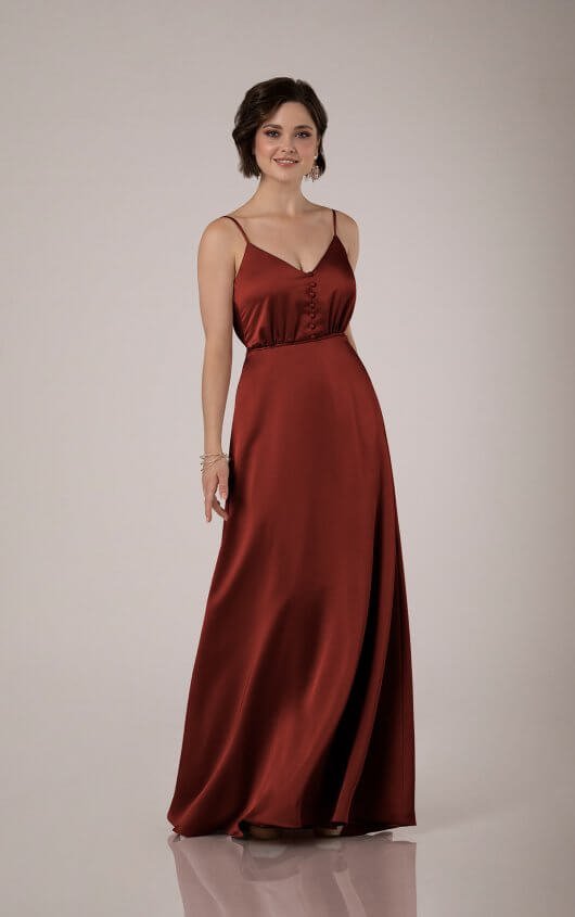 We love warm berry tones for the autumn and this Dessy gown from Divinity Bridal is the perfect shade for an autumnal wedding. It’s muted, moody and super flattering on almost every skin tone. Pair this with a stylish clutch, some gold accessories and even a furry shawl and you’re on your wedding to a stylish affair!