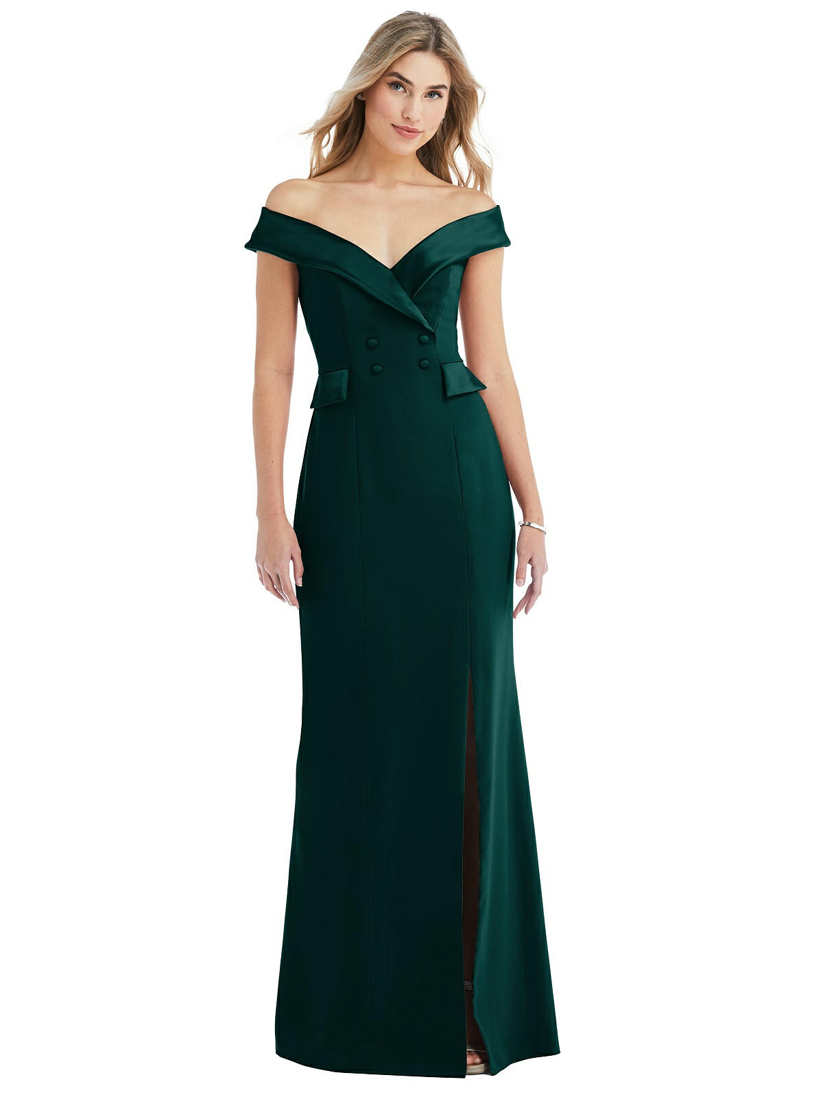 There’s no doubt you’re going to be seeing green everywhere this season! This deep emerald shade is perfect for those moody autumnal weddings and there’s no denying it looks gorgeous for bridesmaids. We’re loving this tuxedo style green number by Dessy, found at La Mariee Bridal.