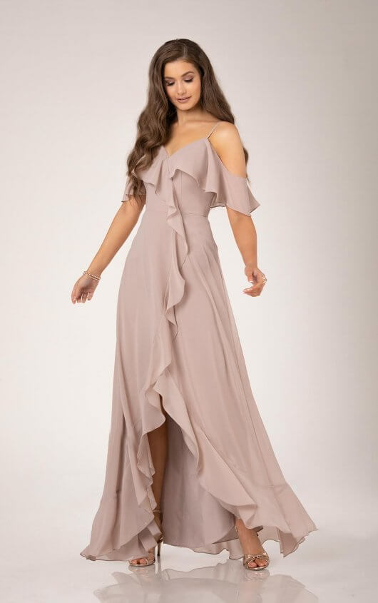 We’re a sucker for a good ruffle. They always add a touch of flamenco, which brings a little flirty and feminine feel. This Sorella Vita dress from LA Bridal House is the perfect combo of stylish and elegant with its muted blush shade and ruffles galore! This style also works well with copper and gold, making it a total dream to accessorise.