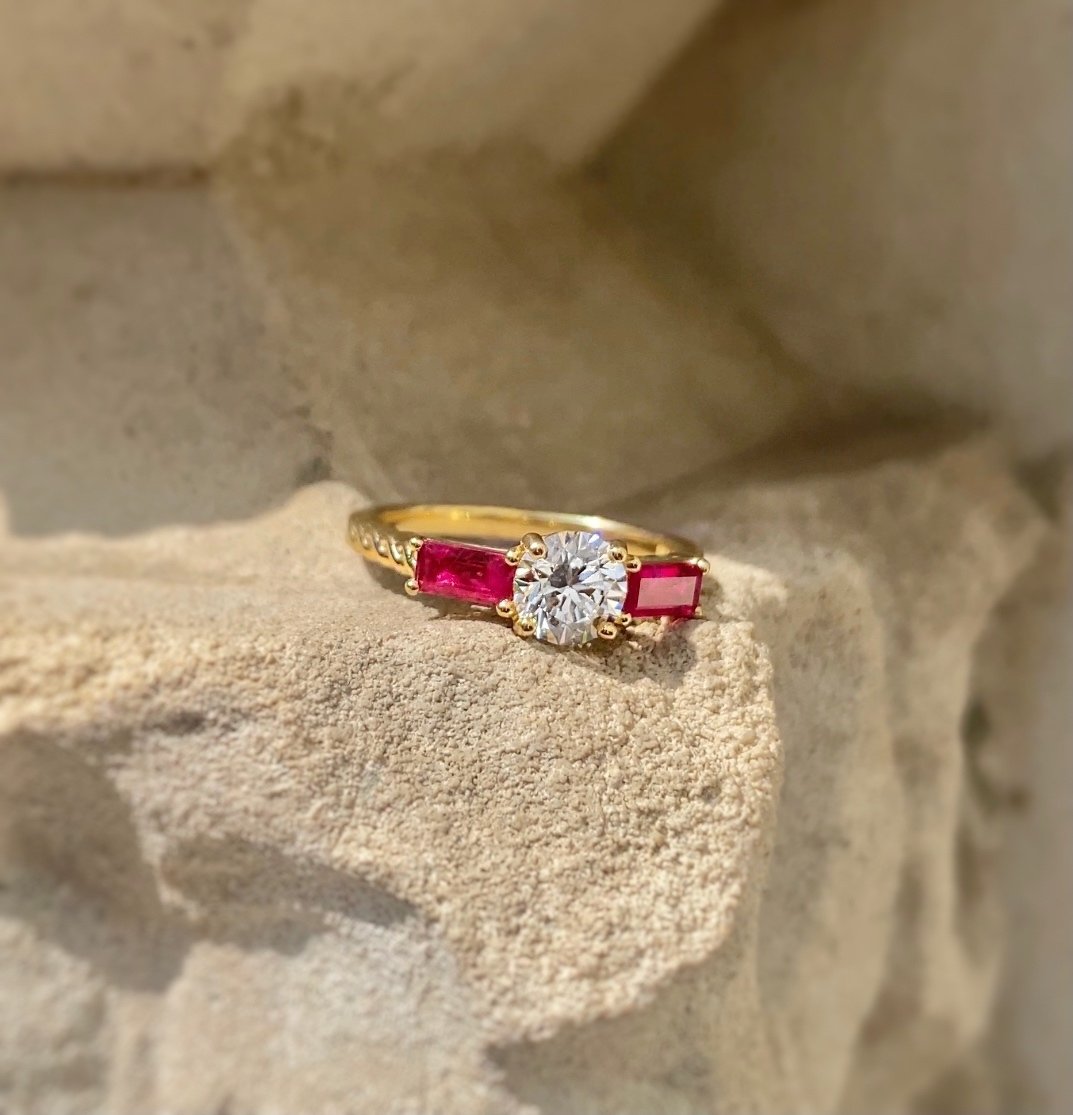 July babies have the beautiful Ruby as their birthstone which represents passion, protection and love. This stunning ruby and diamond engagement ring by Ingle & Rhode is the perfect way you can incorporate this striking gem into your engagement ring.