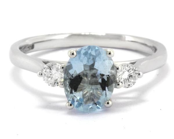 With it’s unique colour and bright shade, March’s aquamarine is the perfect gem for spring! This trilogy ring is set in 18k white gold set with an aquamarine centre and oval cut. This stone symbolizes tranquility, serenity, clarity, and harmony.