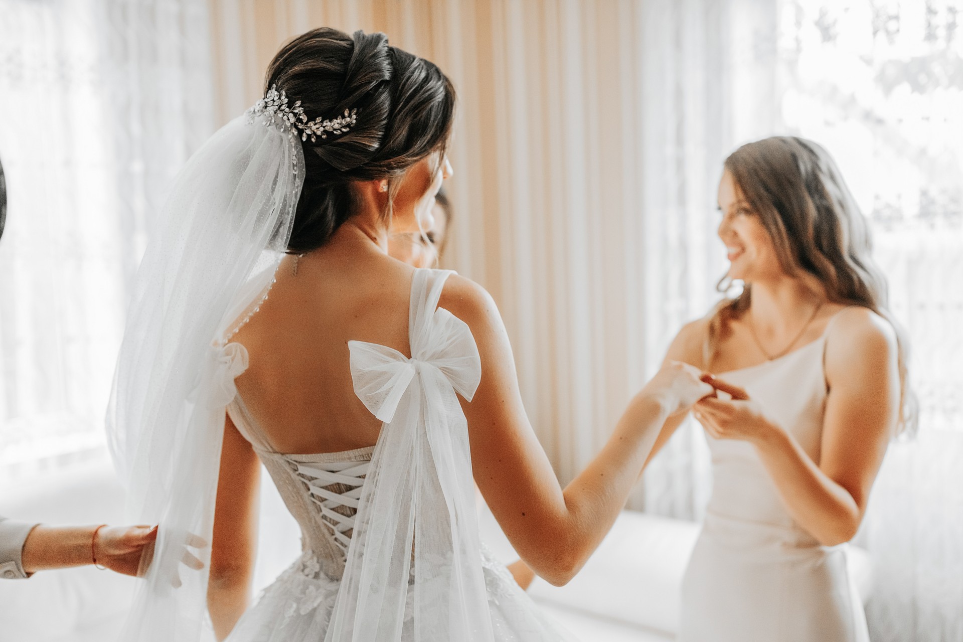 12. Dress Assistance: Help the bride get dressed and ensure her dress is perfect before the ceremony.