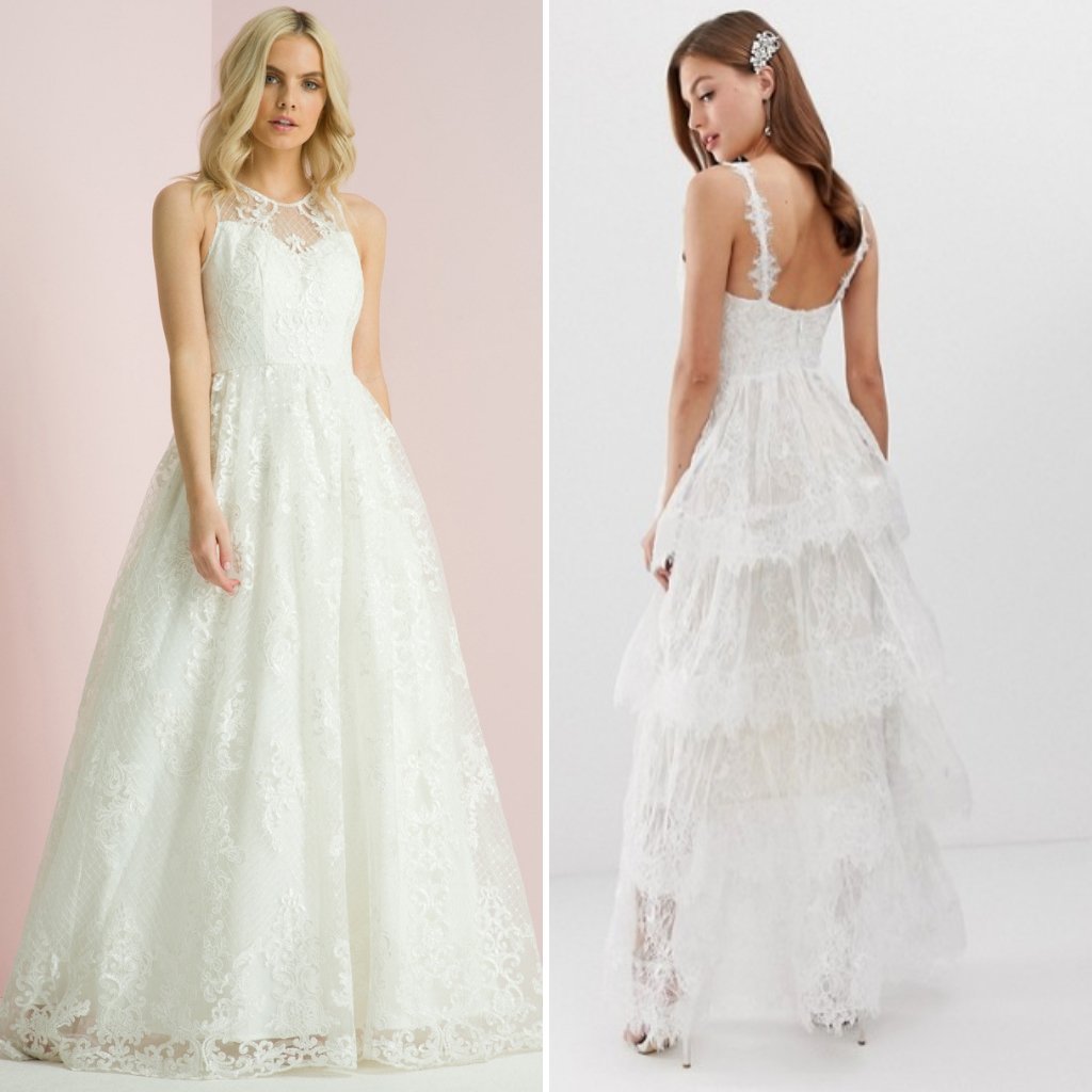 What’s a wedding dress without some lace? Take a look at ASOS’, Chi Chi London’s and Monsoon’s range of lace wedding dresses to fulfil your ideal look, without breaking the bank too! ASOS’s bridal collection ranges from £150 to £380 and Chi Chi £70 to £210.