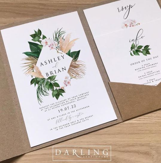 Throwing a botanical boho affair? Will your day be blooming with flowers? Then show your guests exactly what’s in store through your stationery. Invitations often set the stage for the entire wedding, so you will want to think about the thematic and color elements that will inspire the whole event. Check out these stunning creations from Darling Stationery, in Ballymena for some fabulous floral inspo!