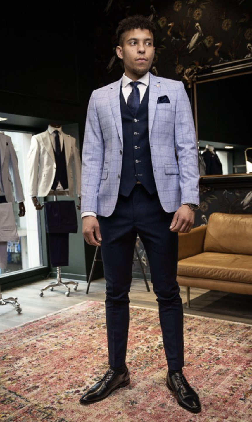 If you want to make a statement, look no further! This luxury blue suit will add a pop of colour to your day. If youb are looking for a summer suit, this one might be the one for you!