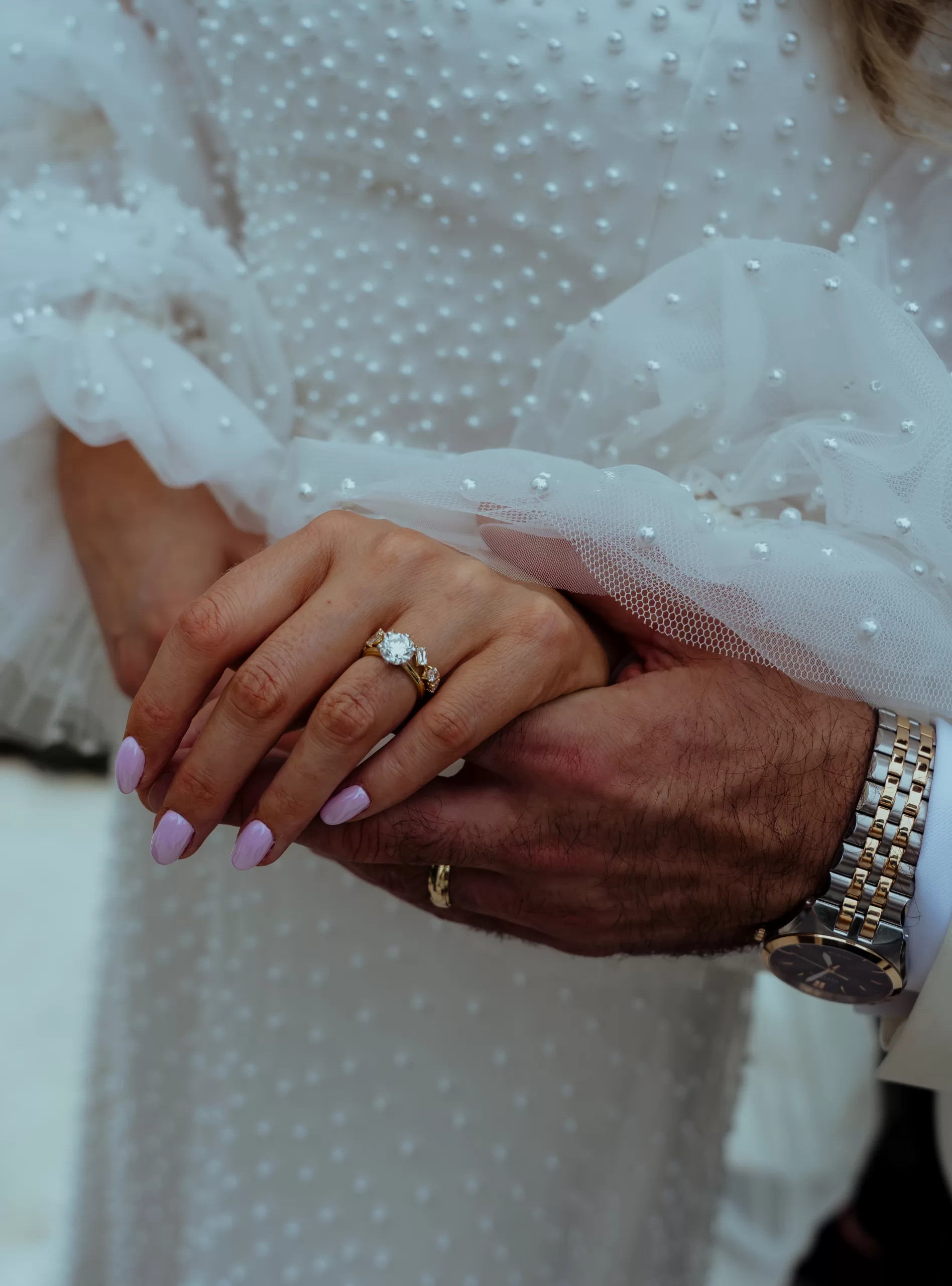 ‘He proposed on my birthday, the 1st August 2022, while we were holidaying on the Amalfi Coast. We were only together 18 months, so I had no idea that it was even on his mind yet. It was the best surprise ever. We were having a drink on the balcony in our room and he said he had to go our hotel reception to see why they hadn’t brought the birthday surprise he requested. I assumed he had ordered a bottle of bubbles that never arrived. A couple of minutes later there was a knock on the door and I was greeted with a staff member holding a rose and a scroll. She asked me to follow her and led me through the hotel, stopping at different points to hand me love letters and single roses. She handed me the third and final letter which read I have a question to ask you? It still feels surreal when I think of it. I was met at the hotel’s private cliff look-out area with a nervous looking Patrick surrounded by vases of roses and petals on the ground. Lana del Rey ‘Young and Beautiful’ was playing while he popped the question and it was one of the most perfect moments of my life.’