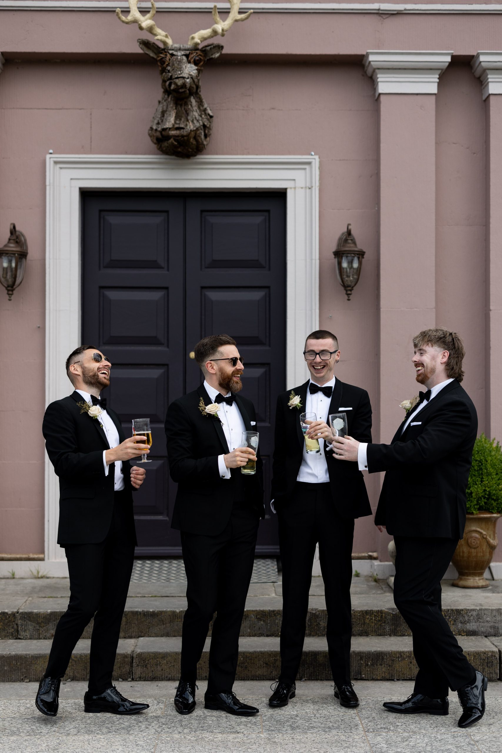 ‘Niall and his groomsmen wore tuxedos from Tangos Suit Hire. Niall added a waist coat purchased at Moss Bros because he wanted to stand out as the groom. He is also a man with a great sense of style, so he added some accessories like a gold pocket watch which was a communion present from his uncle many years ago. It was so special to be able to add this to his wedding attire.