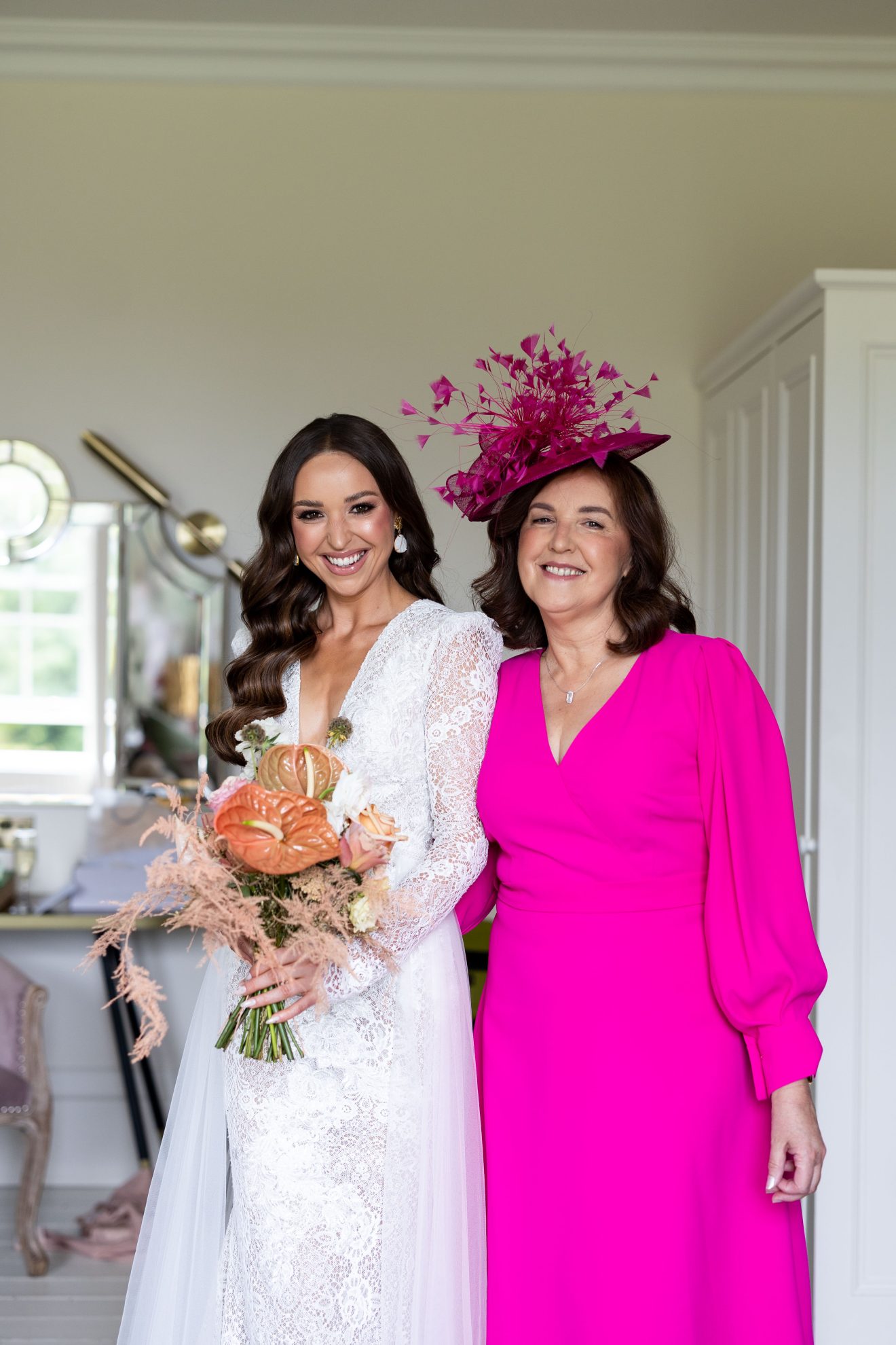 ‘The glam squad of dreams was Ruth Cassidy on make-up and June Murtagh on hair! It was only after meeting these two queens for my trial that I realised how integral your hair and make-up artist are for your wedding day. It goes without saying that they are EXCEPTIONAL at their profession, their work is second to none and I am obsessed with what they do. It’s unfair I can’t have them help me bring the glam every day but here we are. As I said the people you pick for your hair/makeup etc. are so important. I don’t think brides realise that these are the people who are with your from the very start of your wedding day until you walk down the aisle. So the energy, attitude and vibe they bring will have an impact on the tone of your wedding morning and if you want the most amazing wedding morning of all time then you need Ruth and June. They are hype queens, who encourage you to feel like you are the most beautiful bride to ever grace the planet. Also they ensure you as bride are priority but nobody in the bridal party ever felt less than, they treated everyone with the upmost respect and we all had the BEST TIME. Also I can say hand on heart, my mam never felt more stunning because Ruth and June both took the time to chat with her about the look she wanted and they made that happen. So age, hair type, skin type was irrelevant because they took the time to listen and explain what was possible for you individually. During my trail I knew I was in safe hands, I left on cloud nine, so confident and happy in my decision. My wedding morning was a dream and I will always look back with the fondest memories of having both of them with me.’