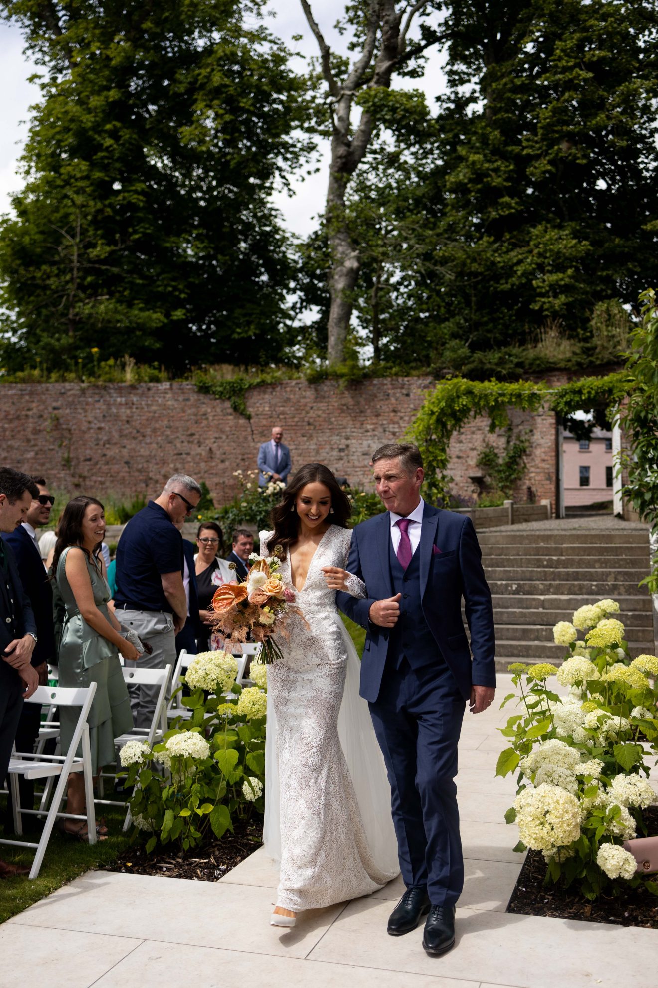 ‘For me having a first look with my dad and getting ready to walk through the gates of the secret garden and down the aisle is a feeling and a memory I will cherish for the rest of my life,’ adds Emma. ‘At that point, I needed to see Niall, I was so ready to marry him and see him and experience this day together, which we had dreamt about. So when I stepped through the gate, linking arm in arm my dad and I saw Niall (tearful, which made me melt), the love I had and the joy I felt was like an explosion. The smile could not be wiped from my face.’