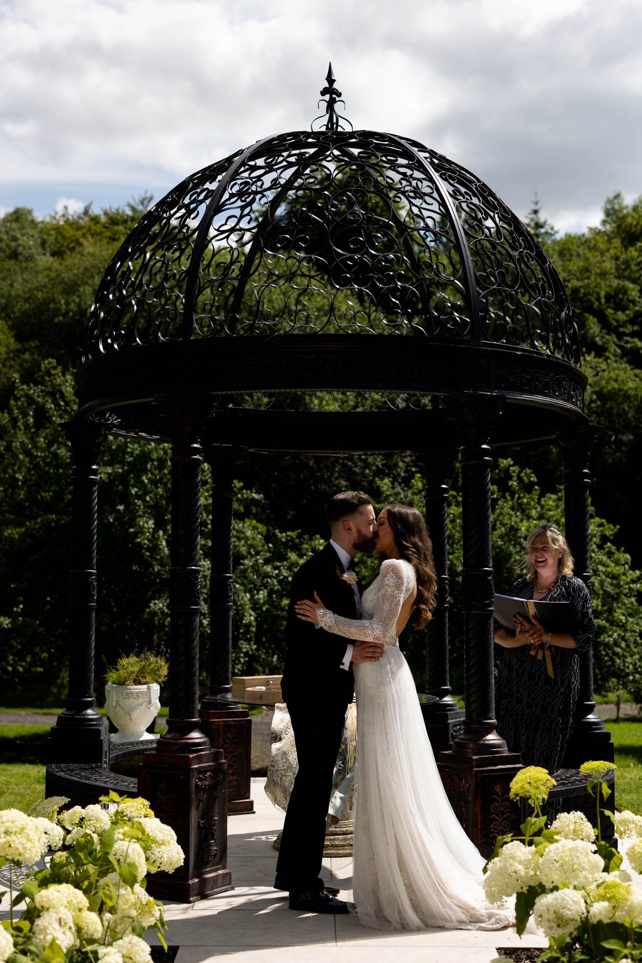 ‘We chose Boyne Hill House as our venue. Honestly, from the moment we ventured up the beautiful driveway we knew it was the one! The aesthetic was just perfect, we wanted an outside ceremony if possible, which they offered in the form of the secret garden nestled on the grounds. What is not to love about that? However, it was mainly how amazing the staff were and their attention to detail. From our first viewing we were given the most heart-warming welcome and we were made to feel like we were the only bride and groom to ever exist. The customer service and attention to detail was second to none with the venue. The team and staff were wonderful. Accommodation for guests was on the grounds so we knew the party could go all night. The manor house is breath taking and the aesthetic inside was beautiful. We also wanted our wedding day to be held in the one place so ceremony, dinner, dancing etc. all at the same venue. However, we didn’t like the idea of everything happening in the one space, again Boyne Hill was perfect because you flow from the grounds to the manor house to the reception area to the courtyard, which gives the illusion that you’ve journeyed to different places without the inconvenience of actually travelling. I also brought my mum to see the venue and she loved it so done deal.