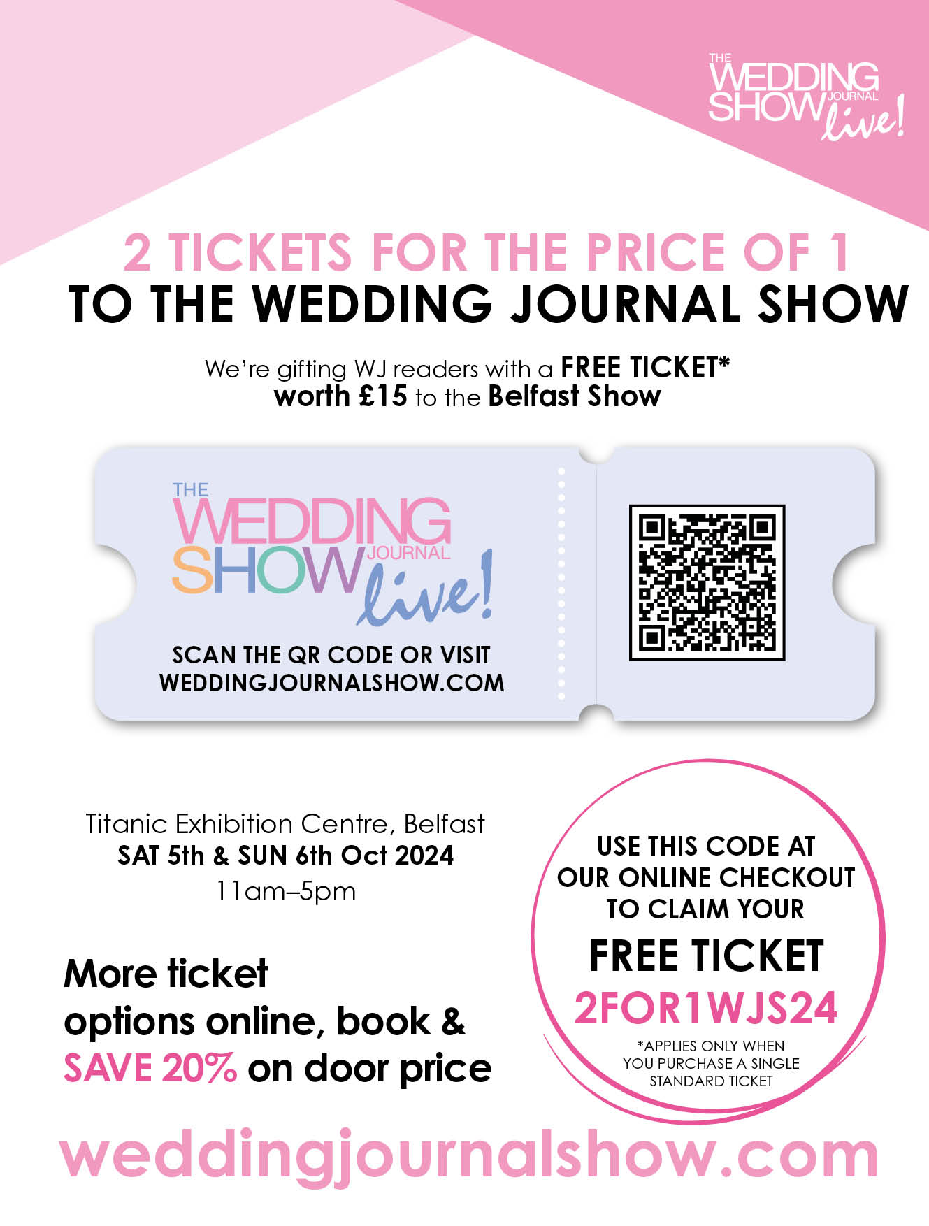 See your exclusive code to get a FREE TICKET when you purchase one single standard ticket to The Wedding Journal Show.
