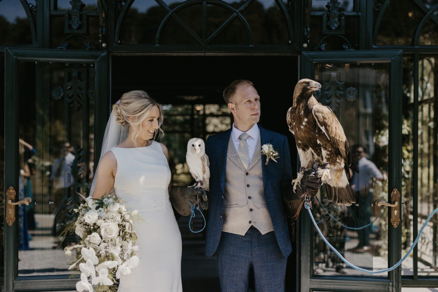 The owls were a very late addition (evening before the wedding it was confirmed). Campbell has an owl on his farm that came to visit him every evening which he took quite a fancy to. About a week before the wedding, he had sent me a video of his owl. I thought it might be nice to have an owl as a ring bearer during the ceremony at the Old Rectory, Killyman! I found NI school of falconry who weren’t sure if they would be able to make the wedding.