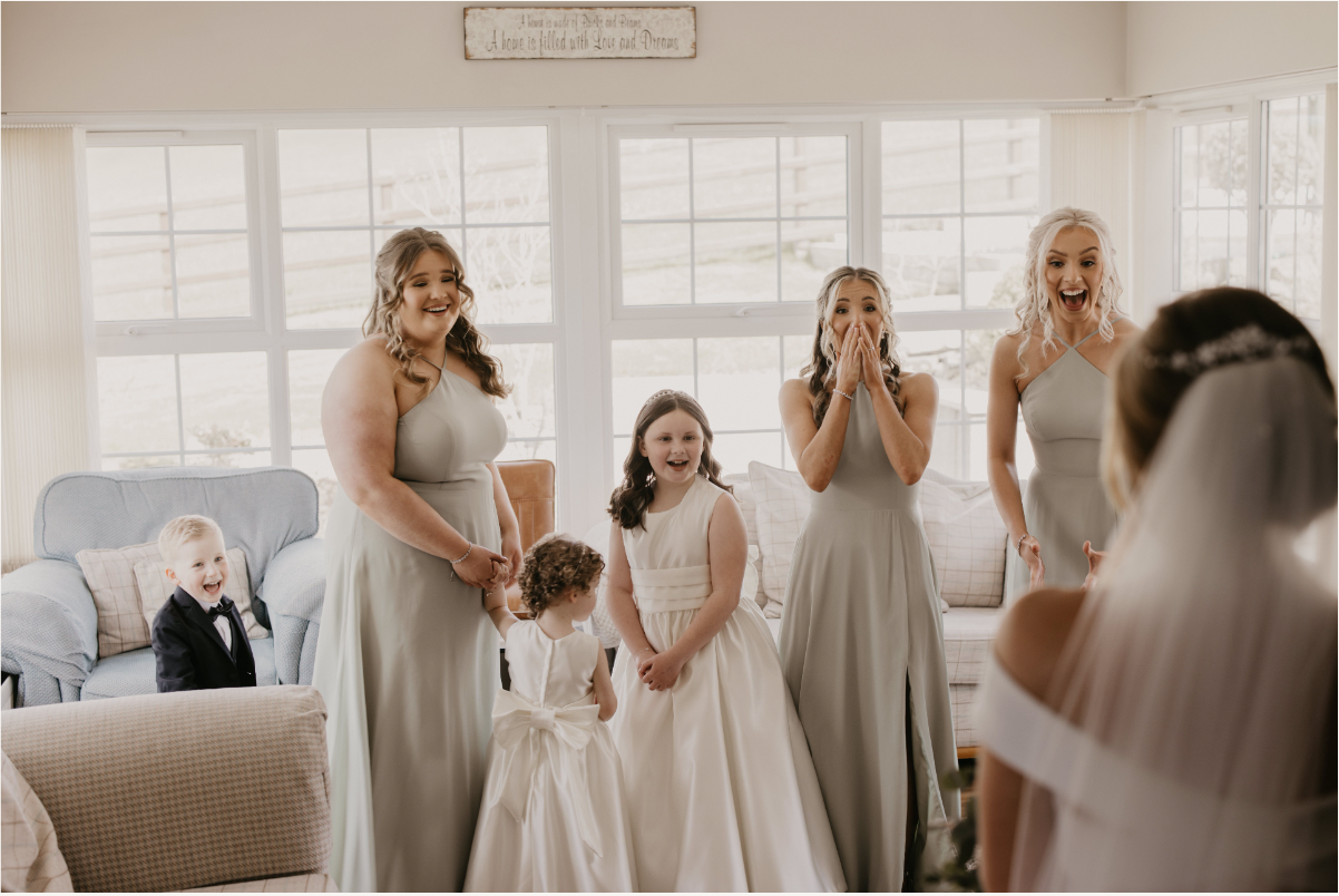 With that in mind, we do recommend that the party is told to put their phones down during the reveal. Bridesmaids holding their phones won’t look aesthetically pleasing in the photographs! You also want to make sure they aren’t caught off-guard in the moment. Selfies can always come later!