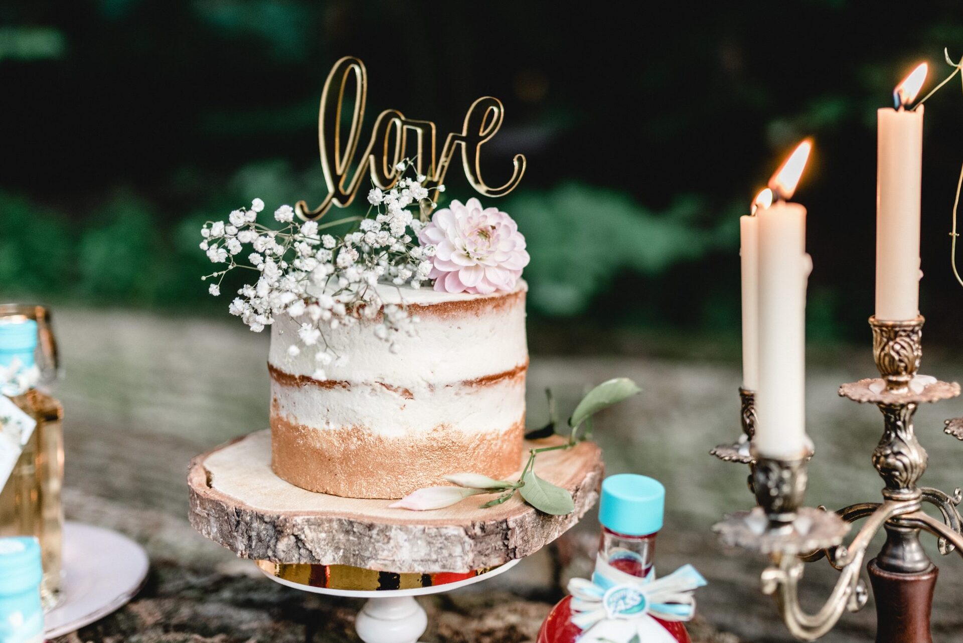 Is anyone else salivating? Just us? When it comes to cake you might like to keep it seasonal. Having an autumn woodland wedding? Look to autumnal tones, like burnt orange, and consider seasonal fruits. Celebrating in summer? Pick bold and bright colours you’d find in the forest. You might like to adorn your cake in wild flowers (baby’s breath can look particularly well) and present it on a tree trunk for that extra touch of the outdoors too.