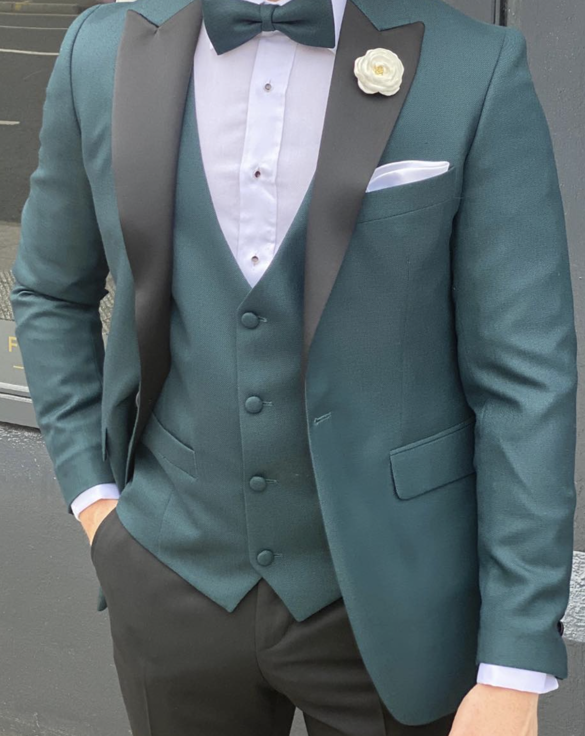 Grooms and groomsmen can also get in on the green action with stylish accessories. Consider incorporating green into their attire with touches like green ties, pocket squares, boutonnieres, or even statement socks. For a more understated look, opt for classic black or navy suits accented with greenery boutonnieres for a pop of colour.