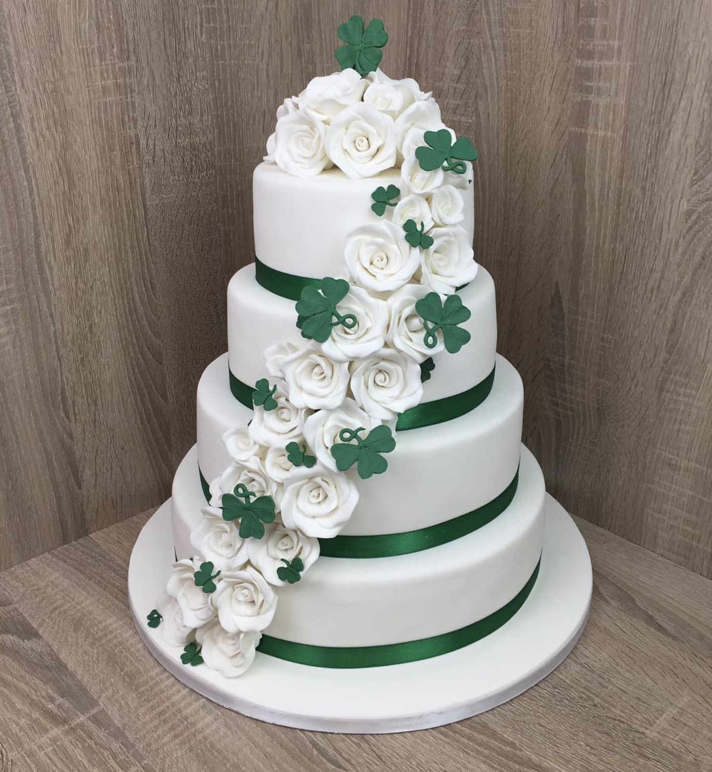 For the bride’s bouquet, consider opting for a verdant arrangement of green blooms mixed with white or cream flowers for a fresh and sophisticated look. Emerald-hued flowers such as green hydrangeas, cymbidium orchids, succulents, and green roses can create a striking focal point against a white wedding gown. Tie it all together with a ribbon in shades of green or a satin ribbon featuring a subtle Celtic knot pattern for an extra nod to Irish heritage.