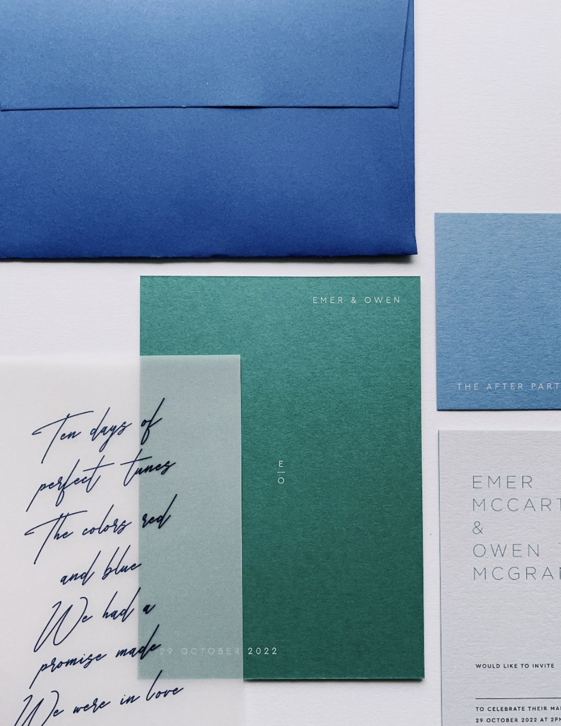 Set the tone for your blue-themed wedding by incorporating the color into your stationery and invitations. Opt for elegant blue and white invitations with intricate designs or consider using blue calligraphy for a personalized touch. Carry the blue theme throughout your wedding stationery, including place cards, menus, and thank-you cards.