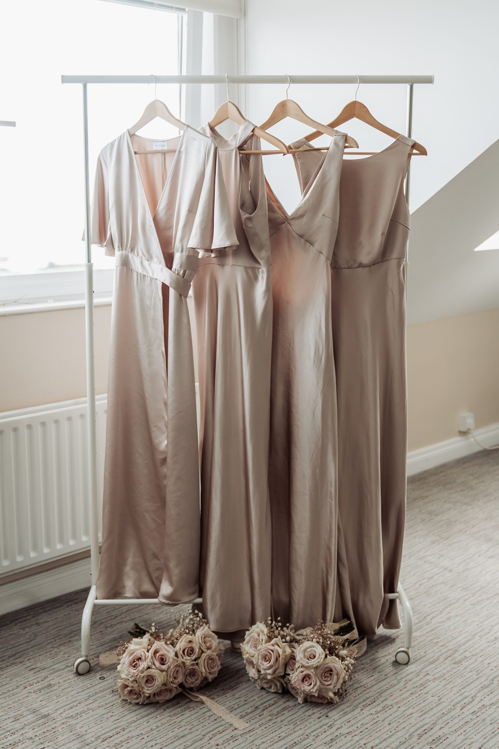 For our bridesmaids, we always loved the gold or champagne coloured dresses, and when we saw this new online business come up with dresses they were perfect! We really wanted to do different necklines for the girls to make them more individual but also compliment their figure although still uniform, and boy, did these dresses deliver!