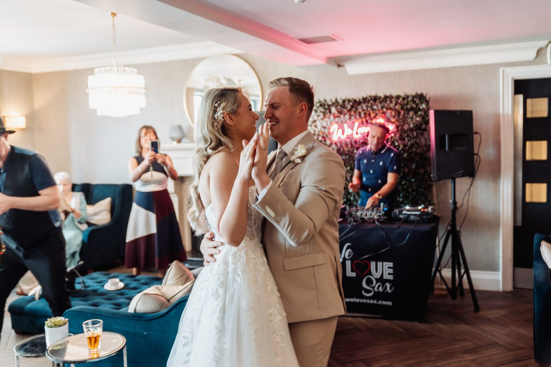 For our music, we chose We Love Sax, Keltic Kaos and Debs fitz Music. Having been to previous weddings with a Saxophone player we knew this would be something we would love for our day. We Love Sax were perfect for our reception outside on the terrace, and the weather was perfect. Really felt like we brought Ibiza to Donegal, and our guests said it completely set the mood for the rest of the day.