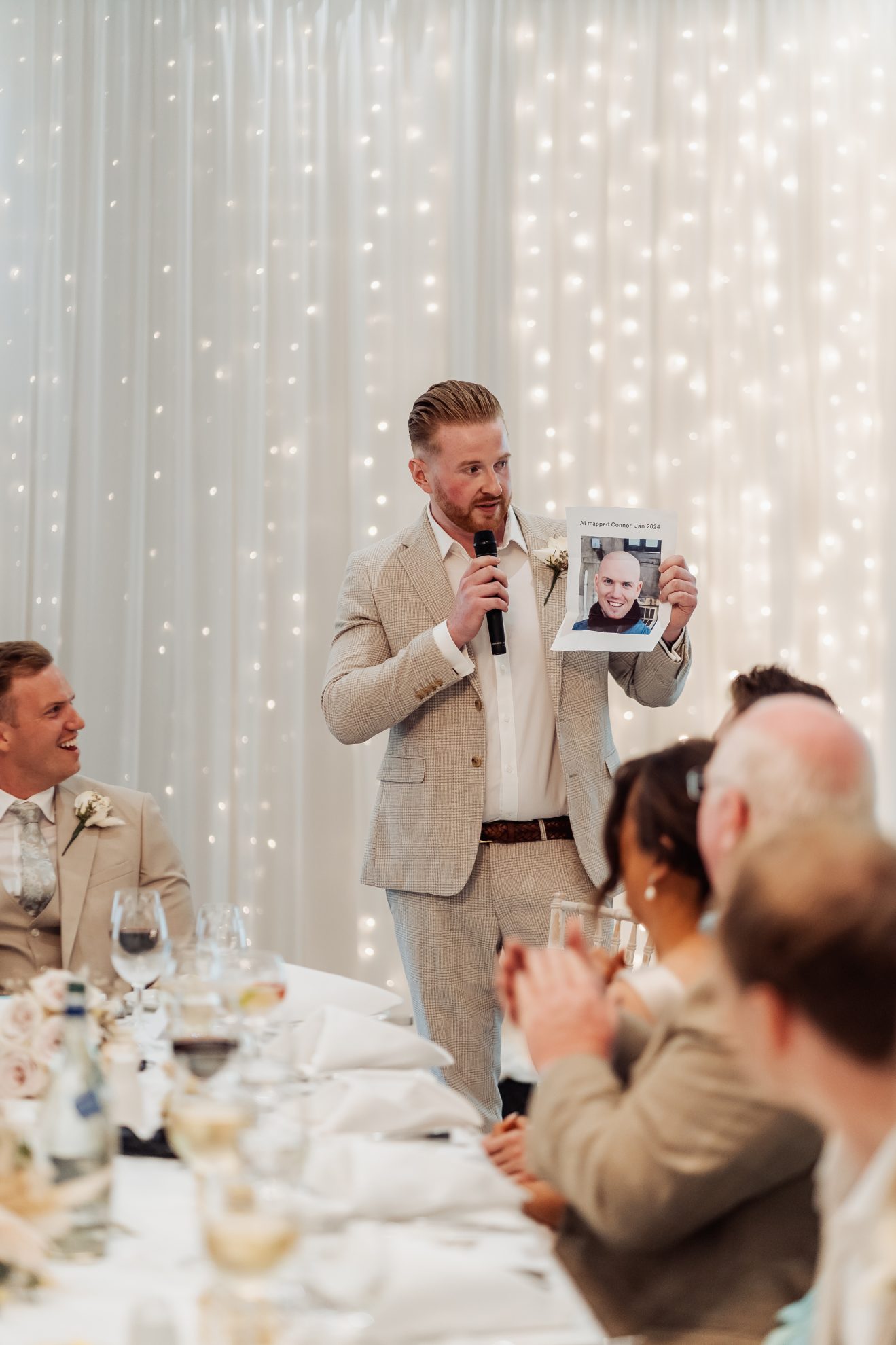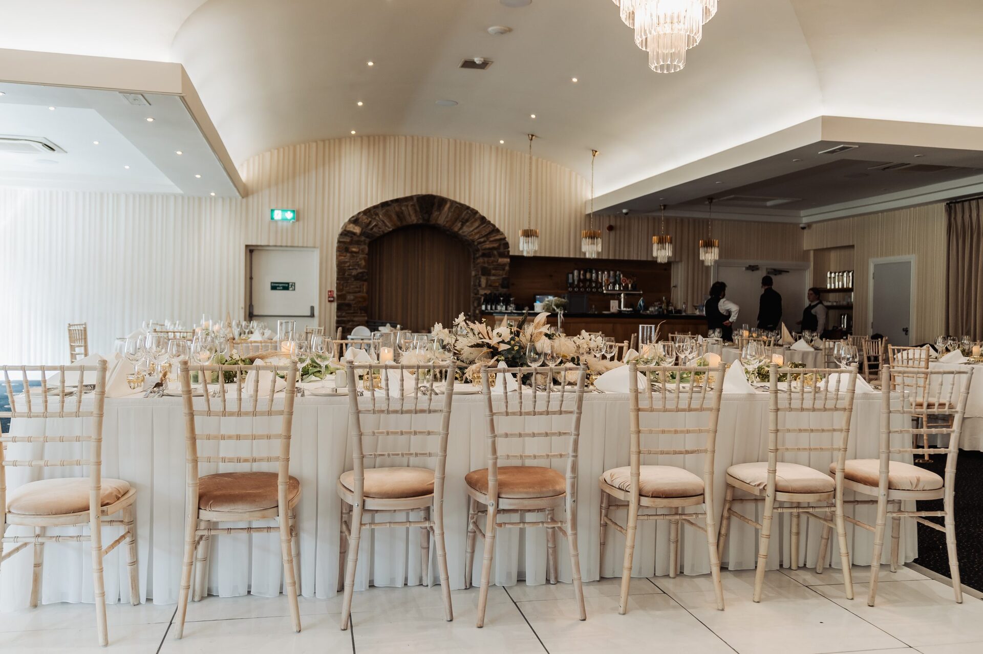Connor’s: A Bride having a ceremony dress and an evening dress is now quite common, however a groom has two suits I had never heard of! Therefore, I decided that if Leanne got to change, so would I. The white evening Tuxedo was a great fit and my favourite moment was one experience I’ll never get again… an entire room of 80 guests giving your outfit a round of applause. Great for the ego!