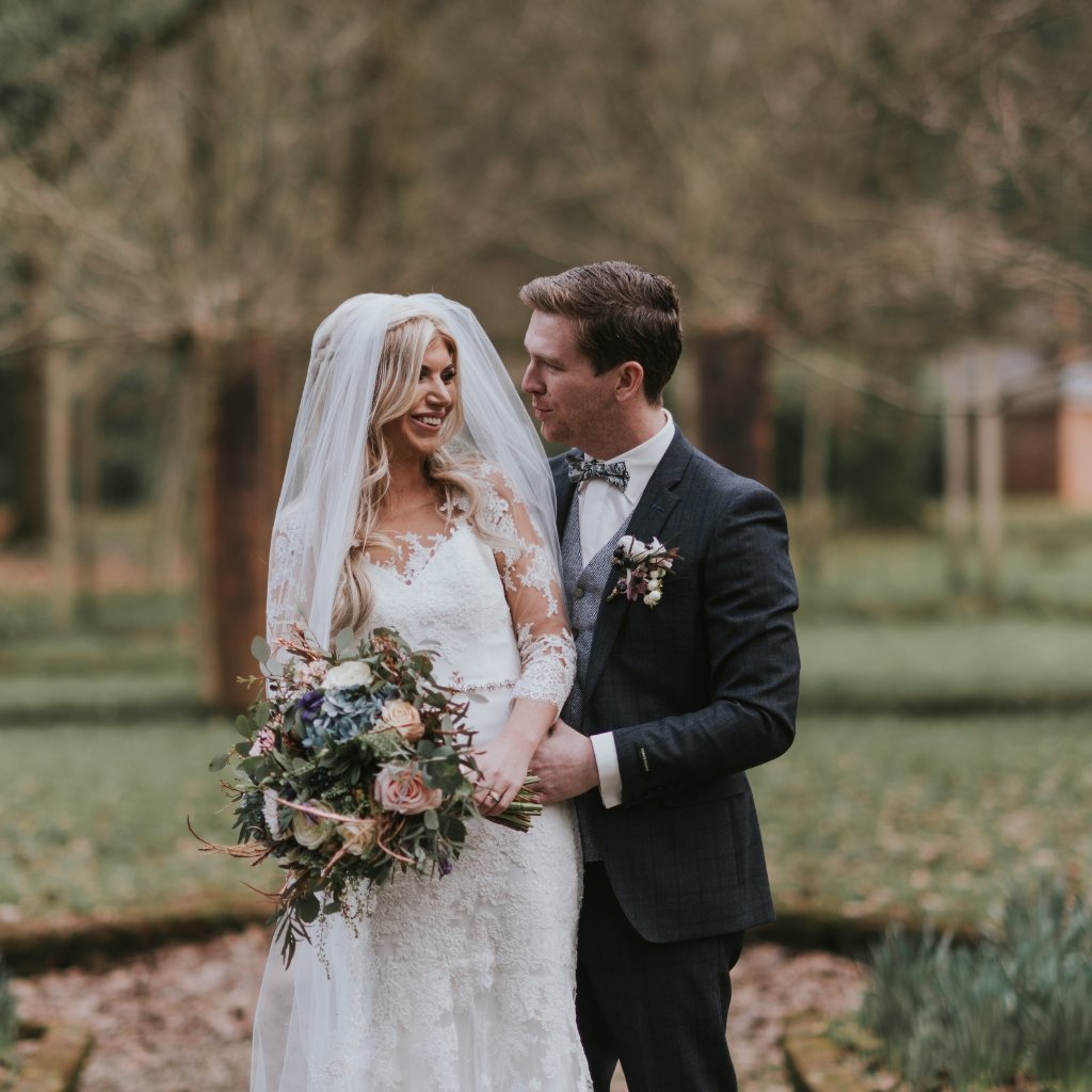 ‘I loved the sleeve of my dress, the intricate Chantilly lace and tulle on the dress complimented my bridal party spot on.’ Lace grey Mark Lesley bridesmaids dresses complemented the lace detail in the bride’s dress. ‘I felt like our dresses were perfect for the time of year, and also looked beautiful against the backdrop of our church and reception,’ comments Victoria.