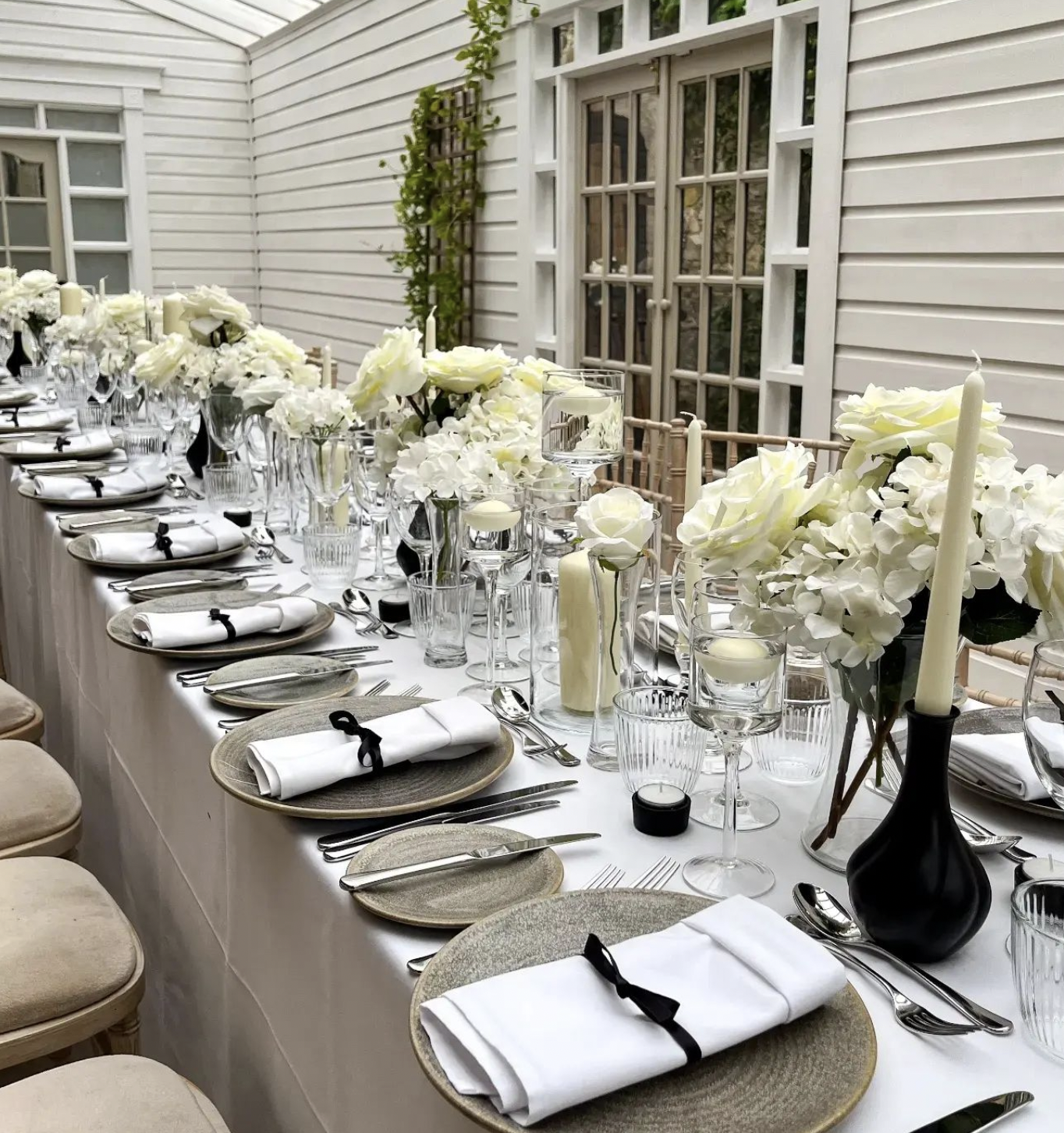 Candles can be an amazing feature when you mix them with fresh flowers. It can be a perfect combination of romance, structure and texture. Add as many candles as you like or keep it simple with a few to make your tablescape unique and eye-catching. We love the little black ribbons to add that classic, chic touch. Look Events NI have got the monochrome style down to a tee!