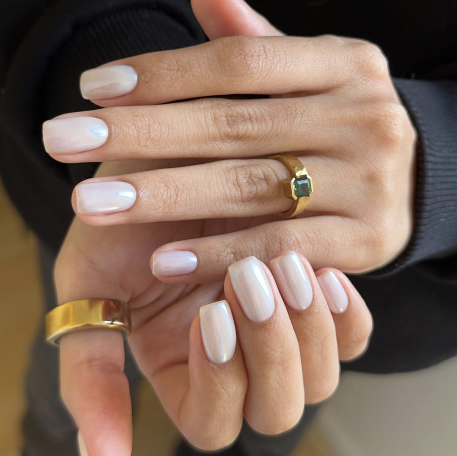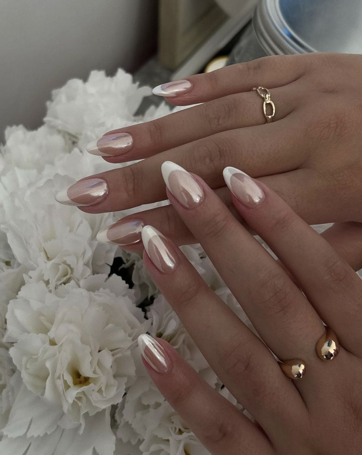 For brides seeking timeless glamour, classic nail styles are always in vogue. A timeless choice like a sheer, neutral manicure with a glossy finish exudes sophistication and pairs effortlessly with any gown. To add a touch of refinement, consider subtle embellishments like a single crystal accent or a fine line of metallic foil. Classic nails will ensure that your hands look effortlessly polished as you exchange vows.
