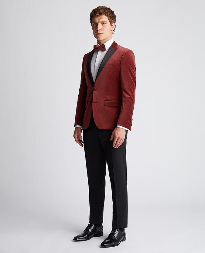 For a colour-coordinated look, the groom can sport a red tuxedo jacket or add a pop with a red tie. For a spring/summer wedding on trend florals with a hint of of red would look great for the grooms accessories (toe, waistcoat, etc.) and could tie in with a red floral print of the bridesmaids. Mixing and matching bridesmaids with a plain red and a ditsy red-based floral would look great too.