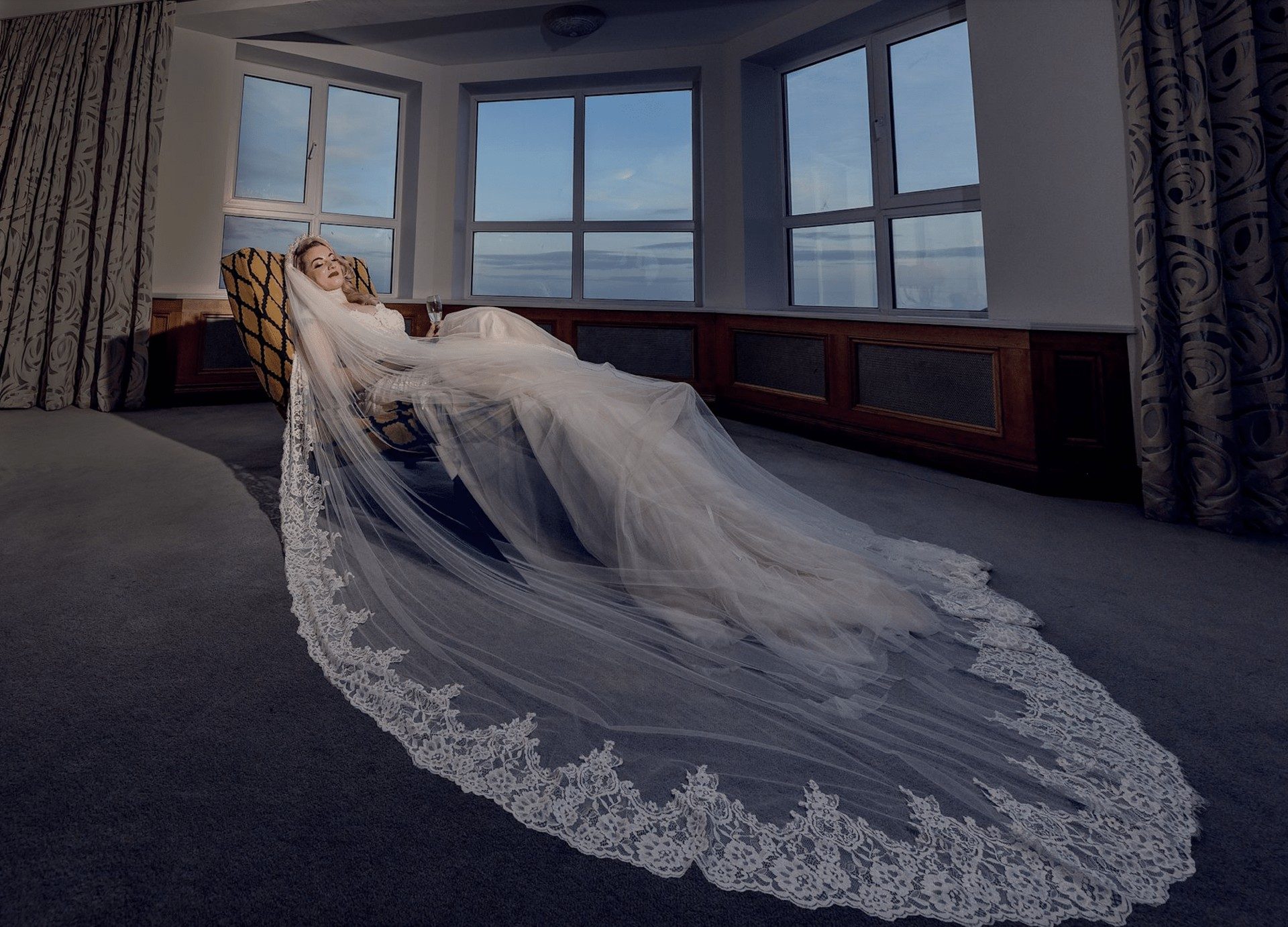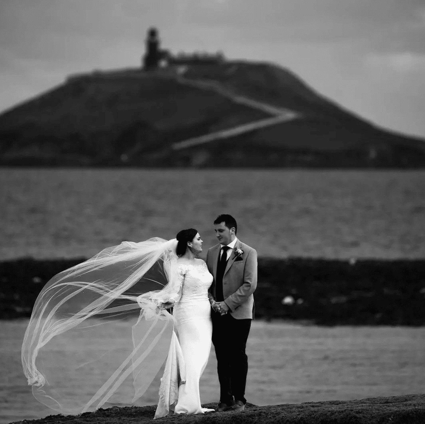 We are quietly proud to have shared in the wedding celebrations of so many happy couples. We’re committed to making your wedding day a precious, memorable and happy event – it’s all about you; your day, your way. At 1,200 sq feet, our newly refurbished, split-level Ocean View Bridal Suite is the largest in the country and boasts a view you couldn’t match anywhere. On the lower level is the bedroom area with a six-foot bed, dressing/makeup table, comfy sofa, armchair and chaise longue, breakfast table, fireplace all with stunning views of Ballycotton Bay through the cushioned bay windows. Just off this room is the large en-suite with jacuzzi bath, separate shower and a two-person sauna/steam room – perfect for relaxing in after the big day itself!
