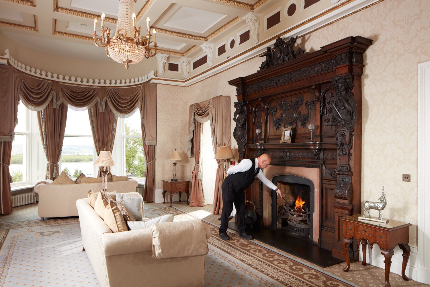 Book in for a show around and you’ll have a chance to view the grand foyer, lavish ballroom, private drinks reception area, luxurious guest bedrooms, numerous bars and restaurants, spectacular honeymoon suite with panoramic views, and immaculate grounds with an impressive water fountain and gazebo. A stone’s throw from the hotel you can stand on the water’s edge and admire the beautiful tranquility of Lough Erne.
