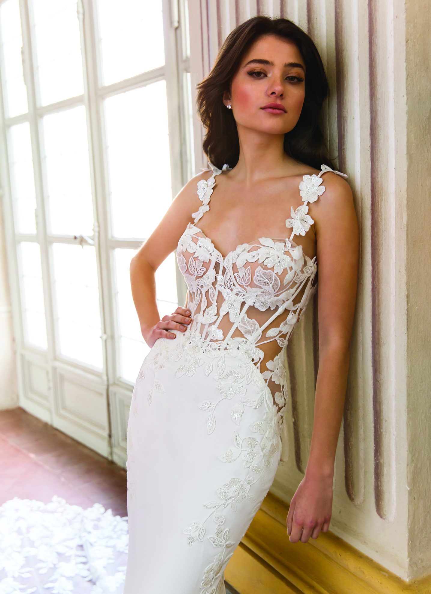 Peek-A-Boo wedding dresses with see-through elements are modern and captivating – they’re the perfect choice for fashion forward brides!