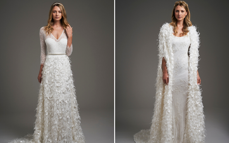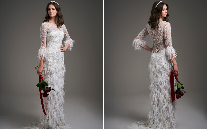 Looking for a wedding dress that offers a twist on the conventional? Well, for the winter bride, a flock of feathered embellishment might just be the answer! Floaty and fabulous, these dresses are both are fashionably fun while at the same time beautifully romantic and glamorous in their styling.