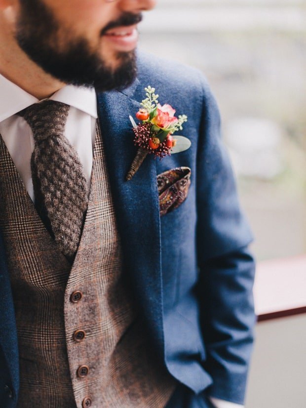 Autumn is a season for orange, browns and darker tones in fashion, and that means groom-suits too! Tweed is perfect for a fall/winter wedding and can be versatile with different colours and styles available. As a staple of British men’s style, the classic look of tweed has been worn for hunting and formal wear in the winter.