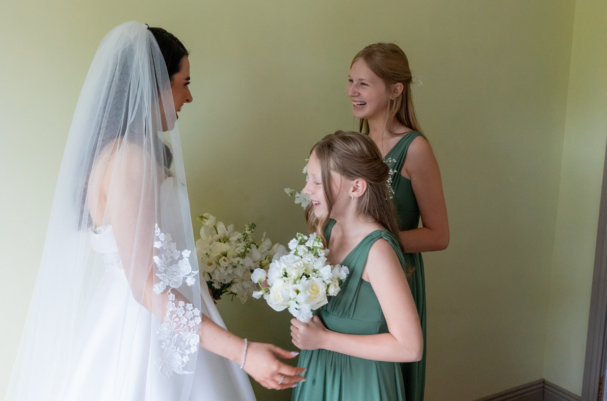 I also got my bridesmaid’s dresses off Thistles. This was such an easy process. The more we got to know each other, the more the ideas flowed. We went with 3 different colours of green silk in the same dress style.