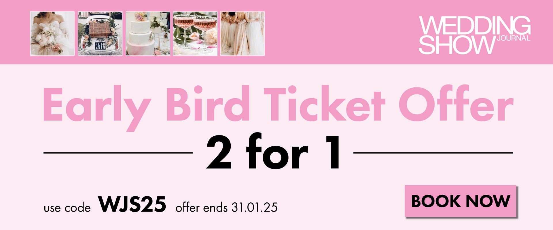 For a limited time, and perfect for Christmas or newly engaged gifting at this time of year, we’ve an Early Bird 2 For The Price of 1 on single tickets using code WJS25 at the checkout. Save £15 until the offer ends on 31st January 2025. Book your tickets online at weddingjournalshow.com