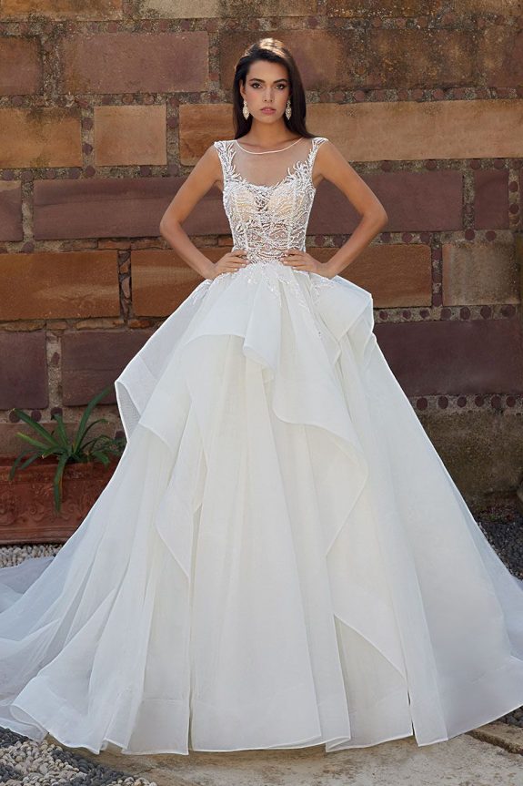 The true ‘princess’ dress. The ball gown has a fitted bodice and a full skirt. Ideal for most body types but can be overwhelming on petites with very small frames.