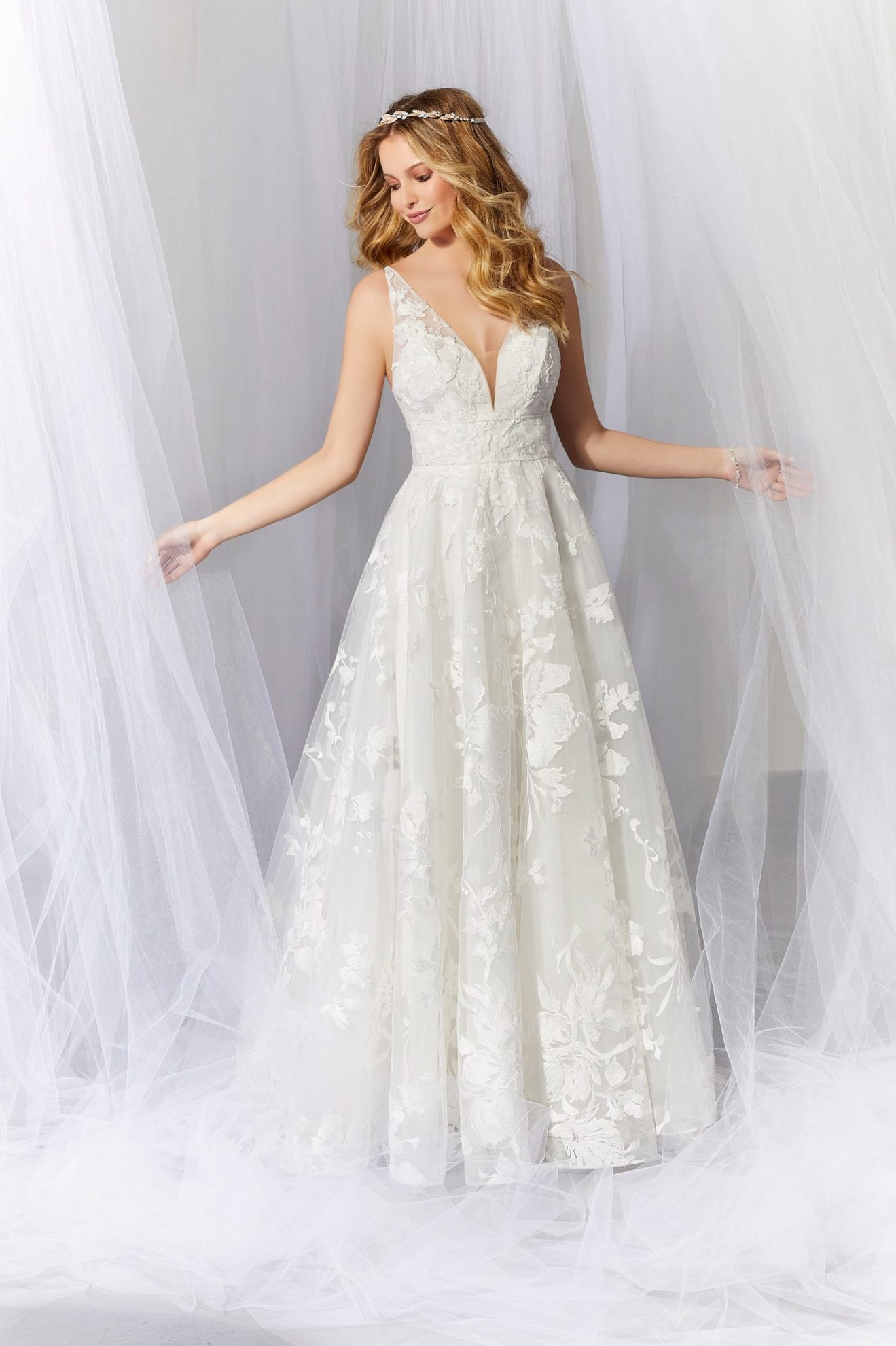 Feminine and oh-so flattering, this style of gown cinches you at the waist, skims the waist, and flares out into a beautiful full skirt.