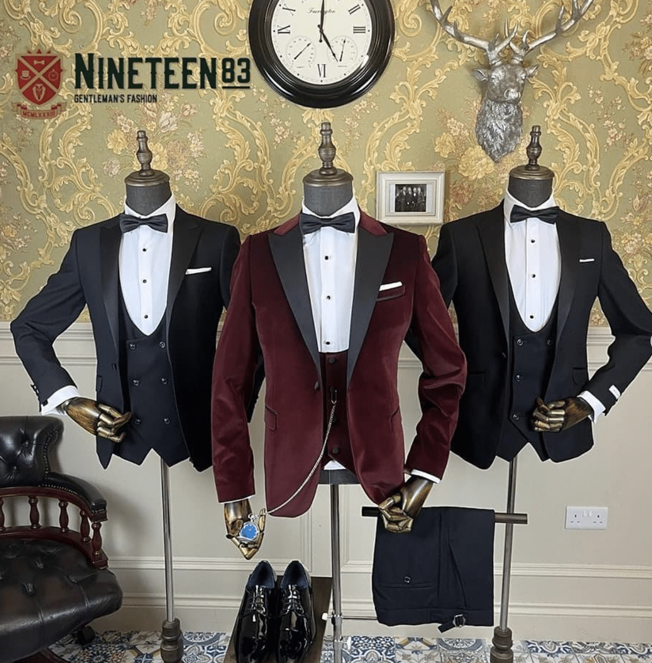 This velvet tuxedo is available at Nineteen83 Gentleman’s Fashion.