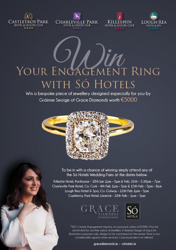 Recently engaged couples will be in with a chance to win a bespoke diamond engagement ring valued at €5,000 with Só Hotels which will be designed by Gráinne Seoige of Grace Diamonds.ie…